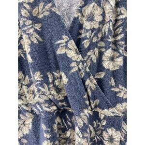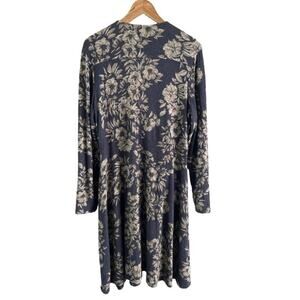 Spense Faux Wrap V-Neck Gray Tan Floral Super Soft Long Sleeve Midi Dress Sz XL