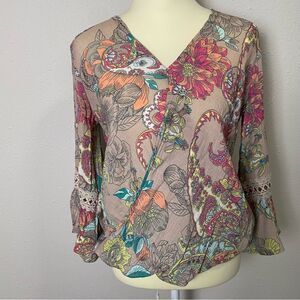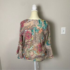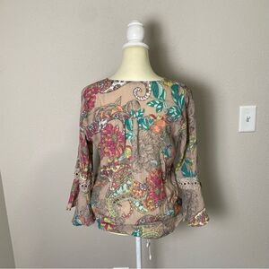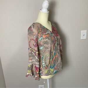 Spense Floral Paisley Colorful Boho Bell Sleeve Blouse Women's Size Small