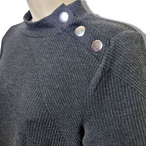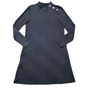 Spense Grey Long Sleeve Crew Neck Pocket Snap Button Detailed RIbbed Dress;