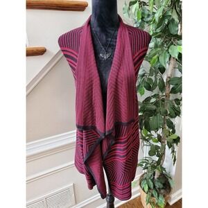 Spense Knits Women's Red & Black Viscose Sleeveless Open Front Cardigan Size XL