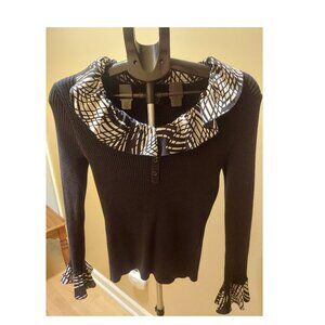 Spense Ladies Sweater, M, Black, Ruffle Collar and Cuffs