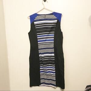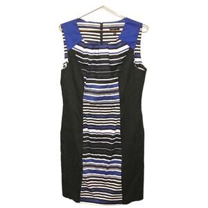 This Spense dress is a fantastic addition to your wardrobe! It features a stylish black and blue striped pattern that is both eye-catching and versatile.