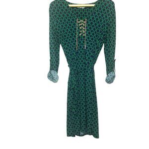 Spense Navy and Green Tie Waist Gold Chain Lace Up Spandex Blend Dress Size S