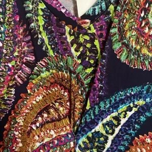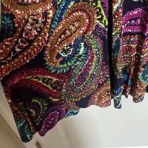 Spense Pink and Orange Paisley V-Neck Short Sleeve Midi Dress