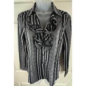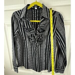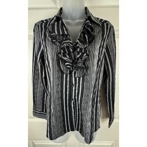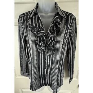 Spense Ruffled Collared Striped Shirt Black Gray cottagecore coquettish M 50-26