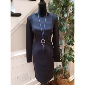 Spense Sheath Dress Women's Size 10 Blue Striped Rayon Stretch Long Sleeve