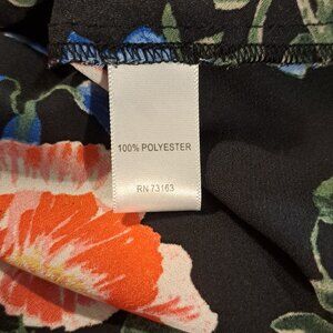 *REASONABLE OFFERS ACCEPTED* Size Small. Made of 100% Polyester. Machine washable. Sheer black sleeveless top covered in flowers. Five button front closure. Longer length in the back. Like new with no flaws.