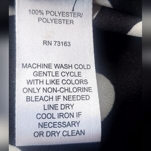 Spense sleeveless black with white polka dots blouse. Semi sheer. Hi low hemline. Button front tunic length. Size small. Polyester.