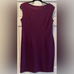 Spense sheath dress. Super comfortable with a little give. Plum bodice with a flattering zig zag black faux leather design. Size 10. Great condition. No rips, tears or stains. Slight fading in crease of faux leather on the right panel (see pics). Smoke free, pet friendly home.