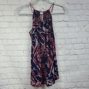 Spense Strappy Cami Navy Red Tank Sleeveless Braided Neck Mesh Blouse Shell Top