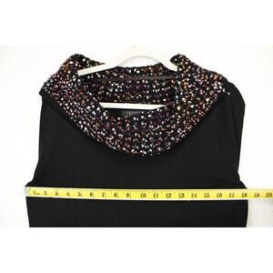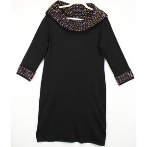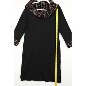 Spense Sweater Dress Women M Black Contrast Multicolor Confetti Cowl Neck & Cuffs