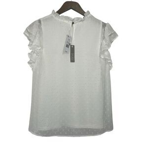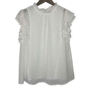 Spense Swiss Dot Blouse Womens Medium White Flutter Sleeve Ruffle Top