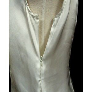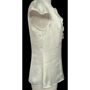 Spense Sz M Off White Pullover Blouse Top Front Fabric Flower Matte Satin Finish