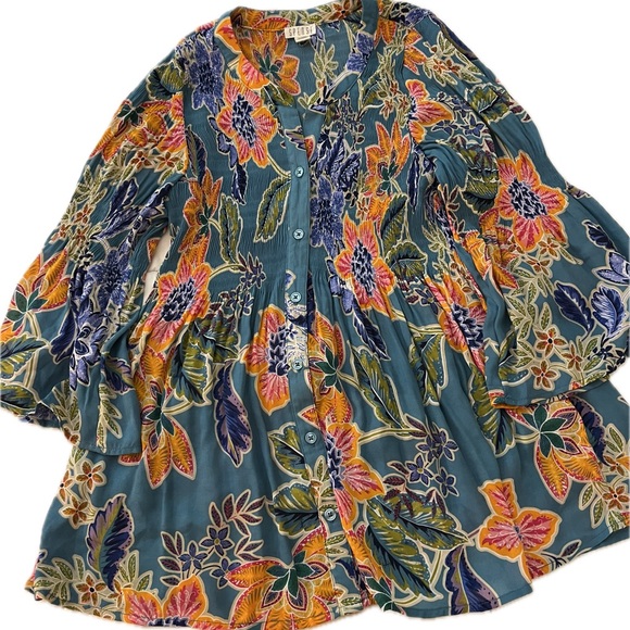 Whispy top…size small petite…tiny little pleats surround. Perfect for Fall or Spring