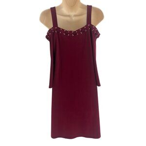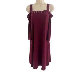 Spense Wine Cold Shoulder Swing Dress Size S Evening Wedding Holiday Party