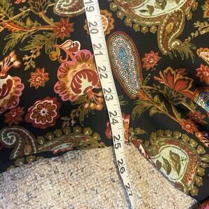 Spense Women Button Up Shirt 1X Black Brown Paisley Hi Low Coastal Sheer Long Sl