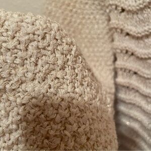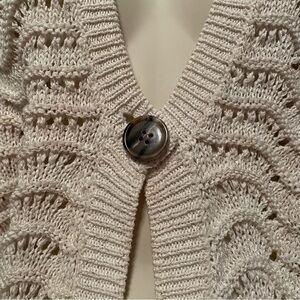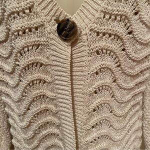 Spense Women's 1 Button Ivory Knit Cardigan Sweater Metallic Gold Thread