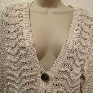 Spense Women's 1 Button Ivory Knit Cardigan Sweater Metallic Gold Thread Medium