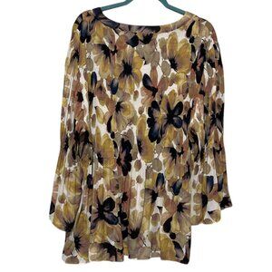 Spense Womens Chiffon Tunic Size 3X Earth Tone Floral Flowy Mature Bohemian Fall