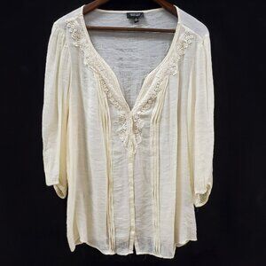 Spense Womens Sheer Gauzy Cottagecore Top Size 1X Ivory Bohemian Lightweight
