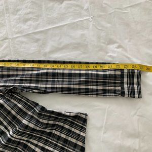 Plaid Black/White, Ruffled V-Neck, Long Sleeve, Cotton Blend.