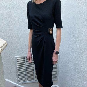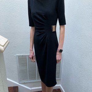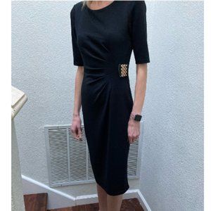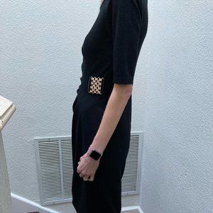 EUC. No visible signs of wear and tear. This dress has a gold decorative buckle and is midi length. Great for evening wear or a special occasion. Size Small. Length: 40 inches. Arm pit to arm pit: 16.5 inches.
