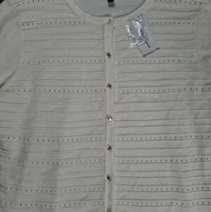 Spense light sweater women size XL color Ivory buttons front 3/4 sleeves New
