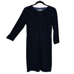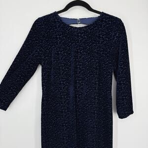 Spense shift Dress size 8 Blue Velvet burnout Animal Pattern 3/4 Sleeve Keyhole