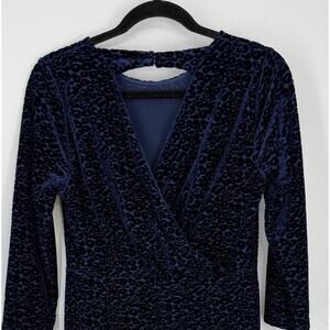 NEW Spense shift Dress size 8 Blue Velvet burnout Animal Pattern 3/4 Sleeve Keyhole cut out back