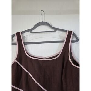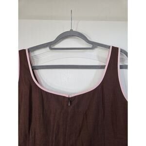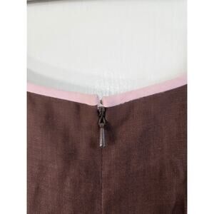 Spenser Jeremy Chocolate Brown Pink 100% Linen Retro Mod Knee Length Dress Sz 10