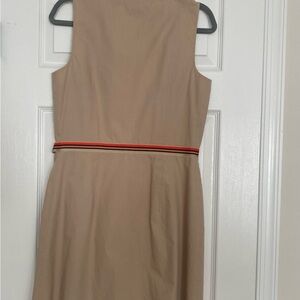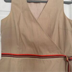 Spenser Jeremy Khaki Tan Cotton Wrap Knee Length Dress Orange Stripe Ribbon Sz 8