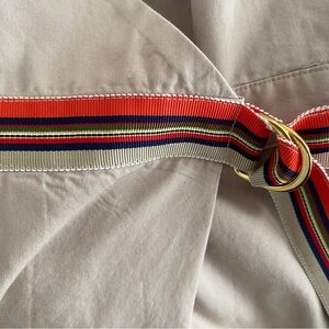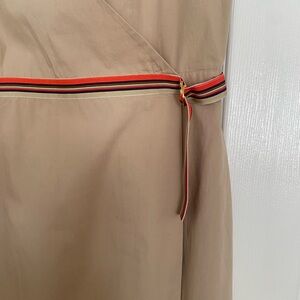 Spenser Jeremy Khaki Tan Cotton Wrap Dress Orange Stripe Grosgrain Ribbon Belt