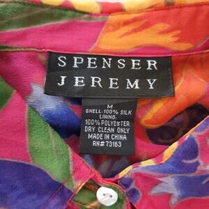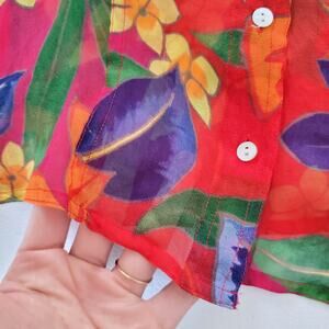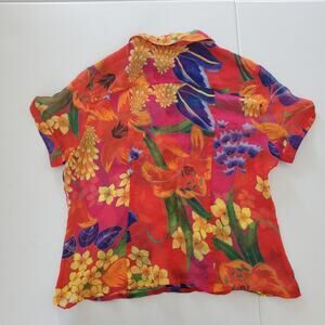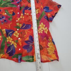 Spenser Jeremy Shirt Womens Medium Red Silk Floral Hawaiian Button Front Sheer
