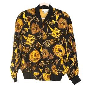 Spenser Jeremy Silk Bomber Jacket Med. Vintage 90s Y2K Streetwear Hip Hop Chains
