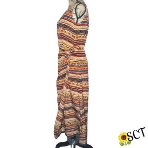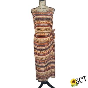 Spenser Jeremy 100% silk faux wrap maxi dress with a lively graphic print. Excellent condition. Fits TTS, measurements upon request.