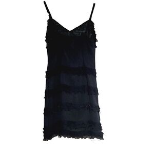 Spenser Jeremy Spaghetti Strap Little Black Ruffle Silk Dress Sz 4
