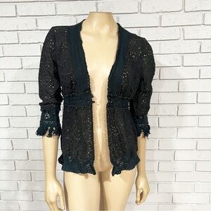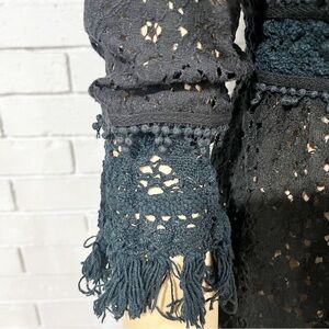 Gently used lace cardigan. Fringe on sleeves.