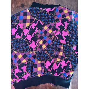 100% silk jacket. Spenser Jeremy. Measurements shown. Like new condition. Super fun retro 90s print. No flaws or stains.