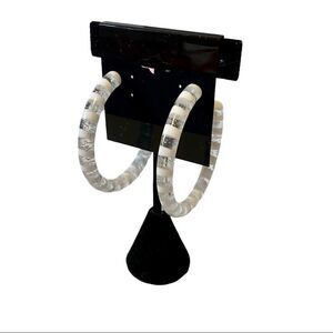 Súper Fun Lightweight Acrylic Clear & White Horizontally Striped Hoops.