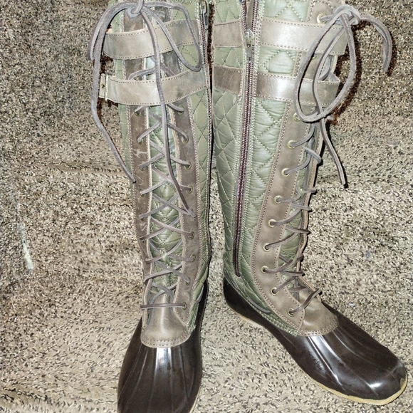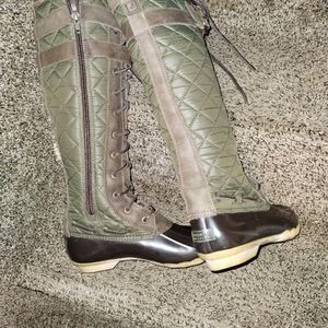 Sperry top sider albatrass leather knee high lace up boots size 6.5. tan and green.