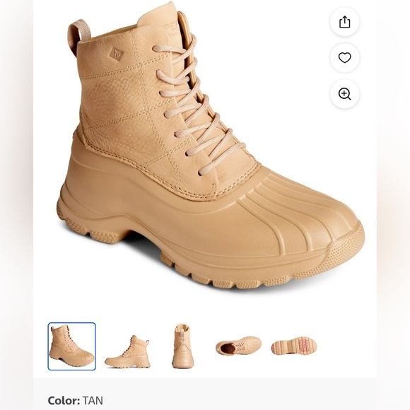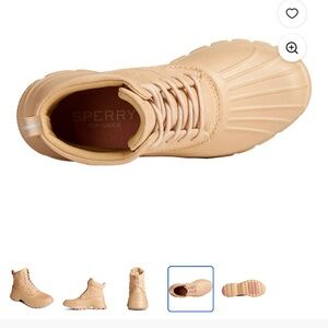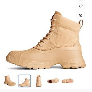 New never wear Women's Sperry, Duck Float Lace Rain Boot. Durability meets style with the Duck Float Lace Up Boot. The durable upper is waterproof, while the microfleece lining keeps you warm and dry. From winter walks to muddy hikes, this boot has you covered. Waterproof leather/suede or cordura fabric and rubber upper Lightweight waterproof EVA 'duck' shell Lace up closure for a secure fit Padded collar with super soft microfleece fabric lining Cushioned footbed for added comfort Non marking rubber outsole with traction pods