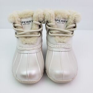 Sperry Alpine Saltwater Toddler Girls Size 7 Pearl Faux Shearling Waterproof Duck Boots