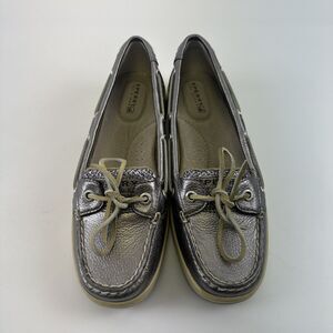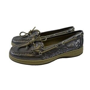 Sperry Angelfish Boat Shoe Pewter Charcoal Glitter Flat SlipOn Leather Women 6.5