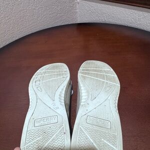 These Sperry tan loafers offer a classic slip-on design with a non-marking rubber sole, perfect for casual outings. The minimalist style and comfortable fit make them a versatile choice for everyday wear. Enjoy the timeless appeal and practicality of these flats, ideal for any relaxed occasion.