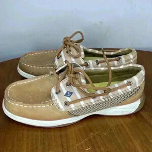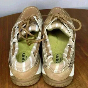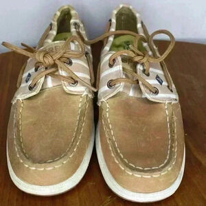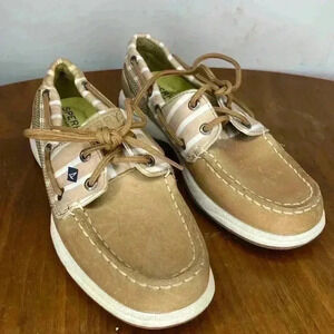 Sperry Angelfish Boat Shoes Size 5 Tan / Beige Striped ( Model STS95676 )