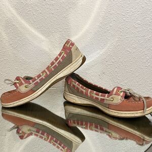 Sperry Angelfish Stripe Leather Boat Shoes pink and tan size 7.5