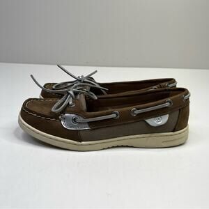Sperry Angelfish Boat Shoes in Light Gray. Our classic boat shoe silhouette, but make it sleek, modern, and stylish. A shortened vamp around the toe gives our Angelfish Two-Tone Boat Shoe a more feminine feel, while the adjustable rawhide 360° Lacing System™ technology creates a secure fit. Details add fun flair, and a memory foam footbed adds comfort with every step.