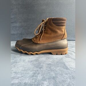 Sperry Avenue Duck Boots Men’s SZ 8 Rubber Lace Up Wool Outdoor Brown Hiking
