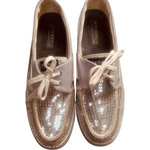 Sperry | Bahama Pewter Sequin Boat Shoes Sparkle Top-Siders | Size 10 | GUC