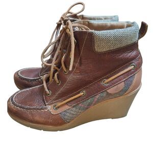 Sperry Bailey Wedge Leather Booties – Brown Plaid Ankle Boots (Women’s 9)